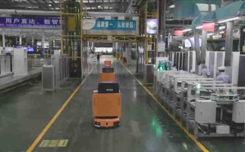 为车载冰箱物流配送打造的智能解决方案,,,,包含产中物流通过潜伏举升AMR搬运至线边,,,,产后成品物流智能仓储,,,,流程包含产中物流智能齐套入库,,,,线边安灯叫料AMR智能配送至线边,,,成品入库、、、出库,,,通过无人堆高车机器人,,,,智能仓储管理替代人工作业管理,,实现更高存储、、、更高效率、、更具柔性化的解决方案。。。